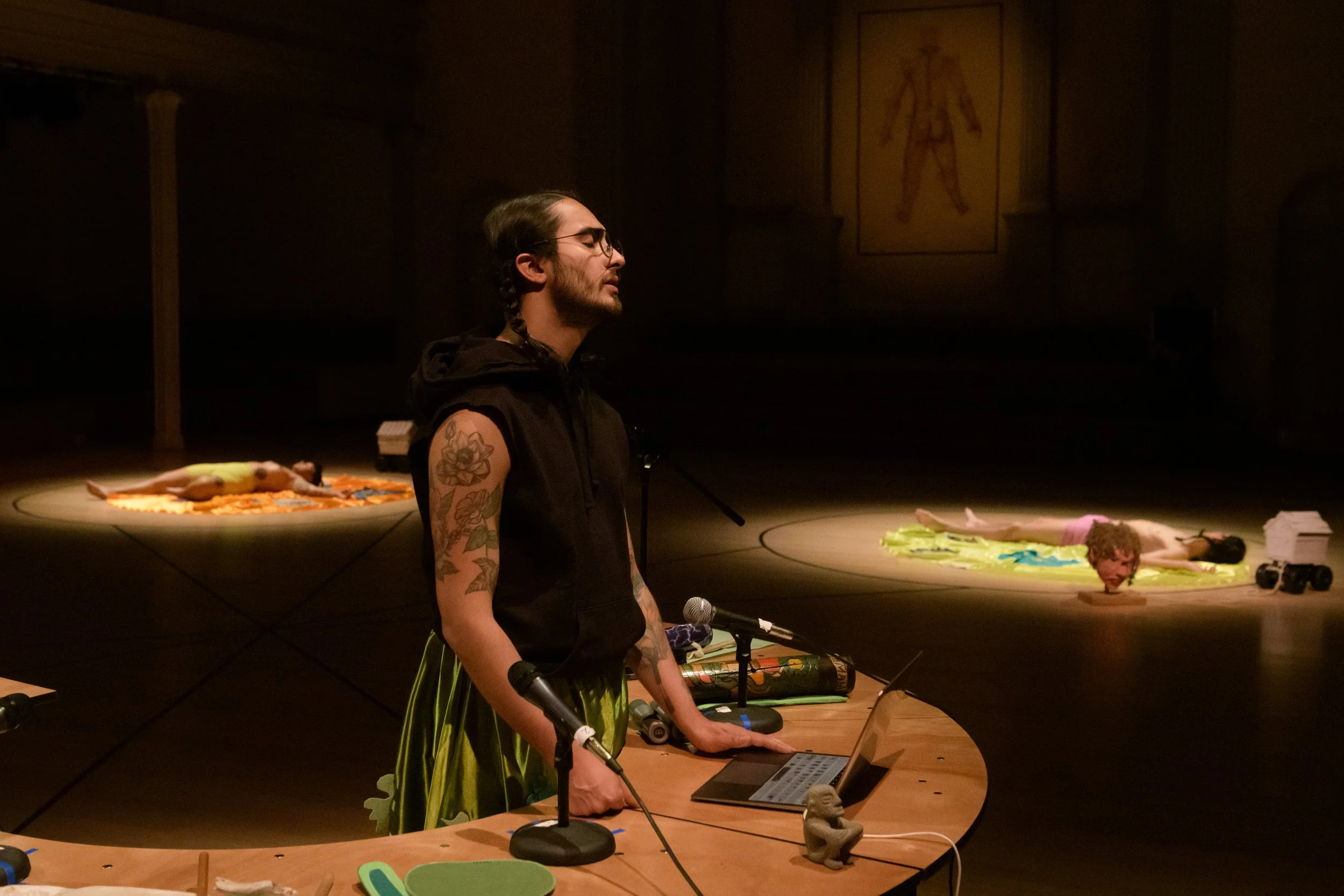 Bessie Award Nominee performance The Circle or Prophetic Dream was commissioned and premiered at Danspace Project in NYC in the fall of 2022. The performance is an anthropological research on how the body and sound inhabit social space as new forms of nomadism, during the current migration crisis caused by displacement, climate change and land appropriation.